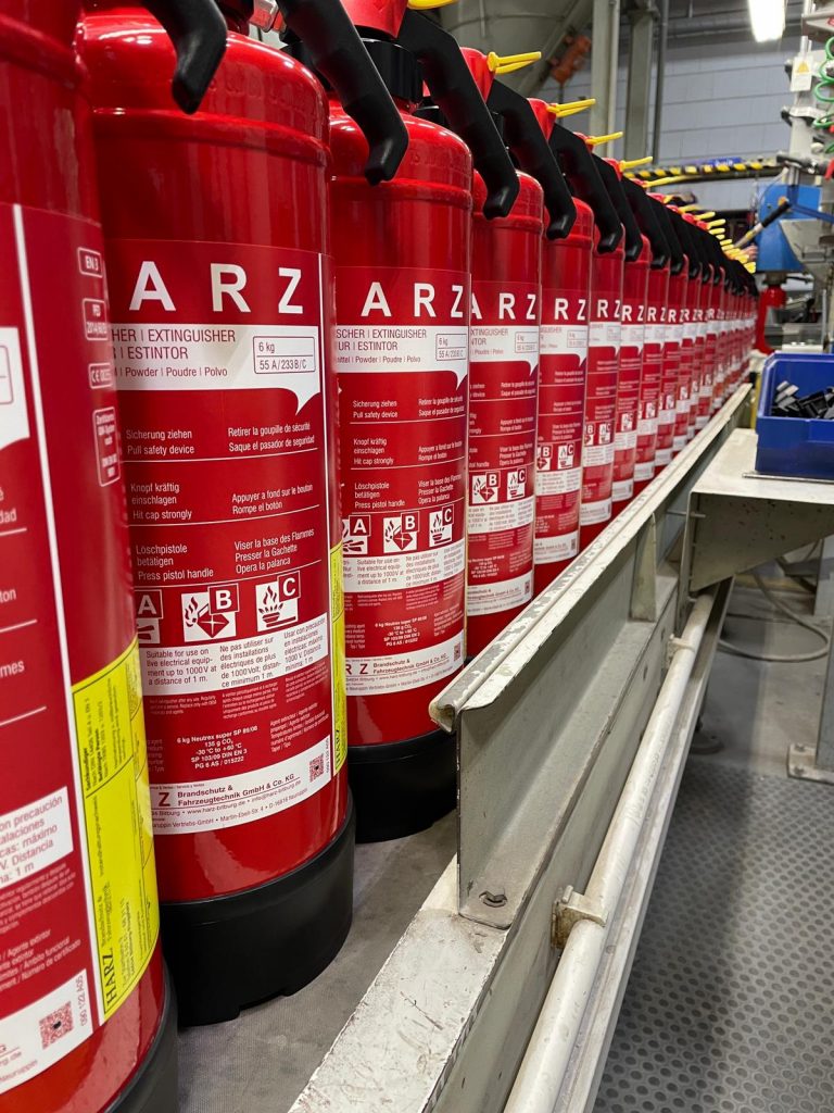- Unsere Feuerlöscher werden in einem etablierten deutschen Unternehmen gefertigt, das seit über 120 Jahren Erfahrung im Brandschutz besitzt. Die Produktion erfolgt nach höchsten Standards und übertrifft in vielen Bereichen sogar die gesetzlichen Vorgaben – etwa bei der Behälterstärke und der Materialauswahl.